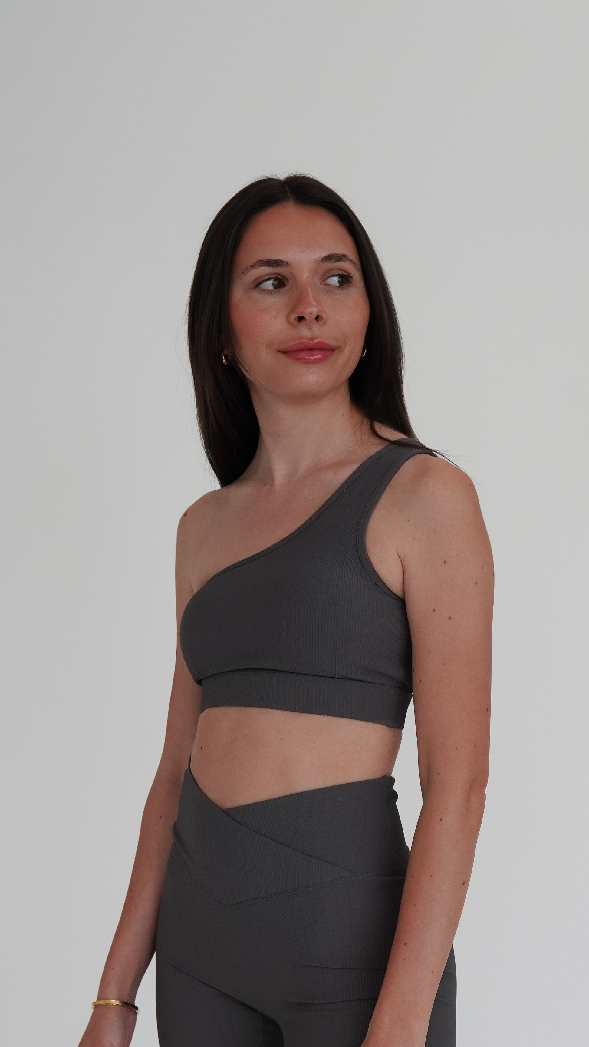 Asymmetric elegance for the studio and beyond. The Rise Crop combines performance with minimal luxury, designed to elevate your activewear wardrobe.